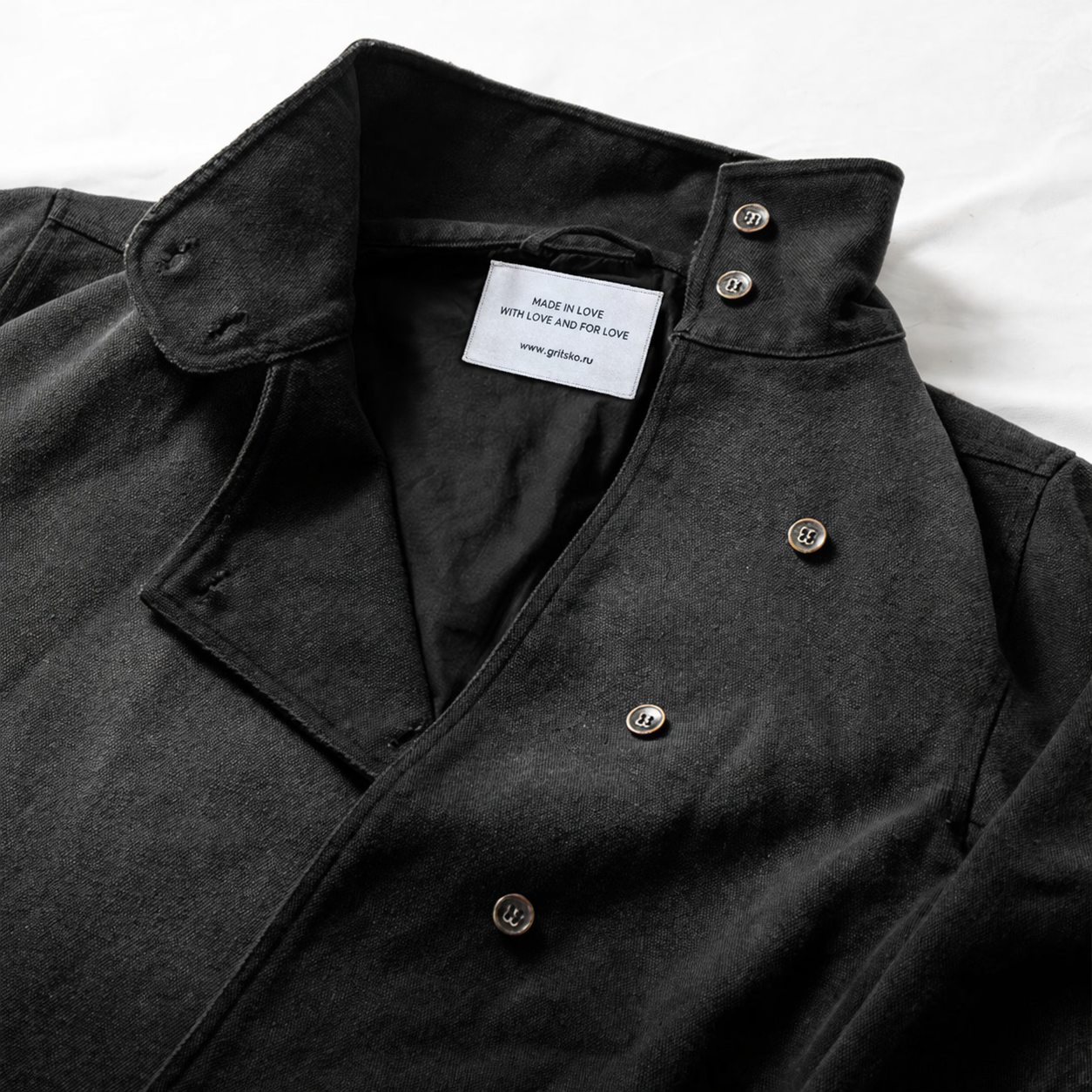 Высокий воротник-стойка, акцентные манжеты, скрытая планка